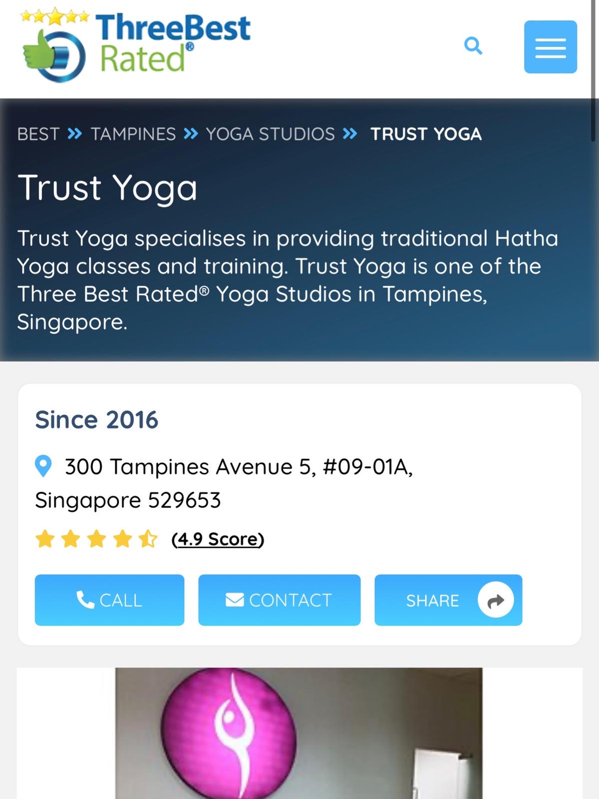 We are incredibly proud and grateful to share that Trust Yoga Tampines has been recognized as one of THREE BEST RATED yoga studios in Tampines.