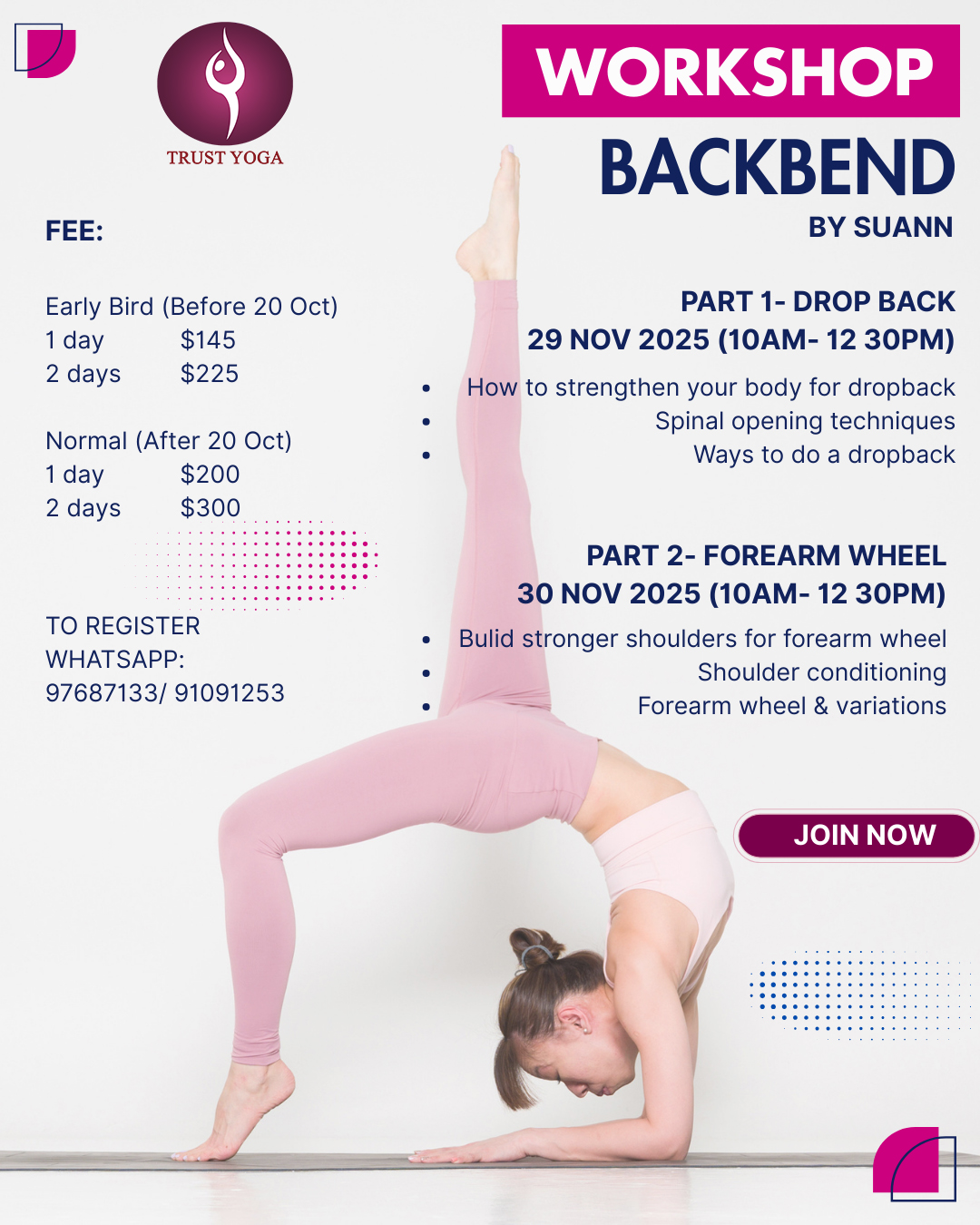 Find new heights in your backbend practice. Join instructor Suann for a 2 days 𝗕𝗔𝗖𝗞𝗕𝗘𝗡𝗗 workshop.